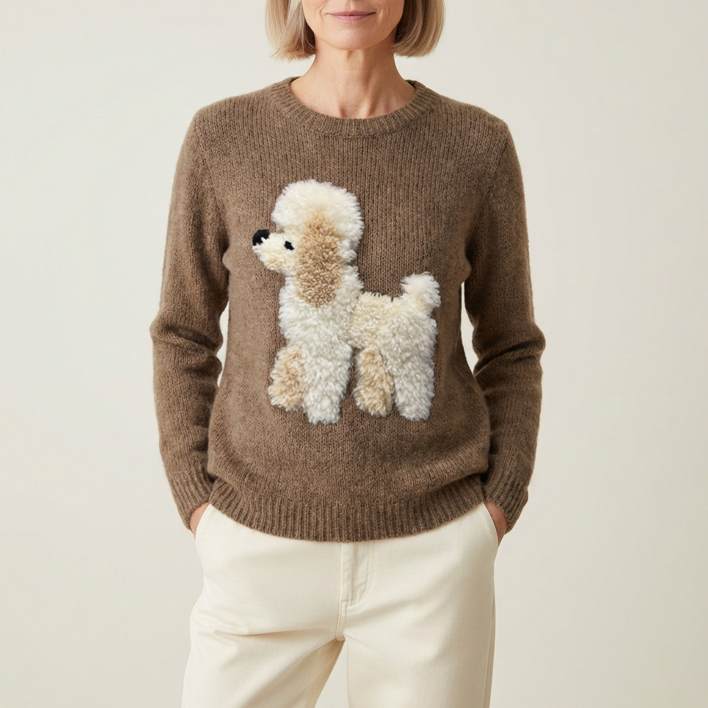 Maglione in cotone marrone chiaro con design barboncino