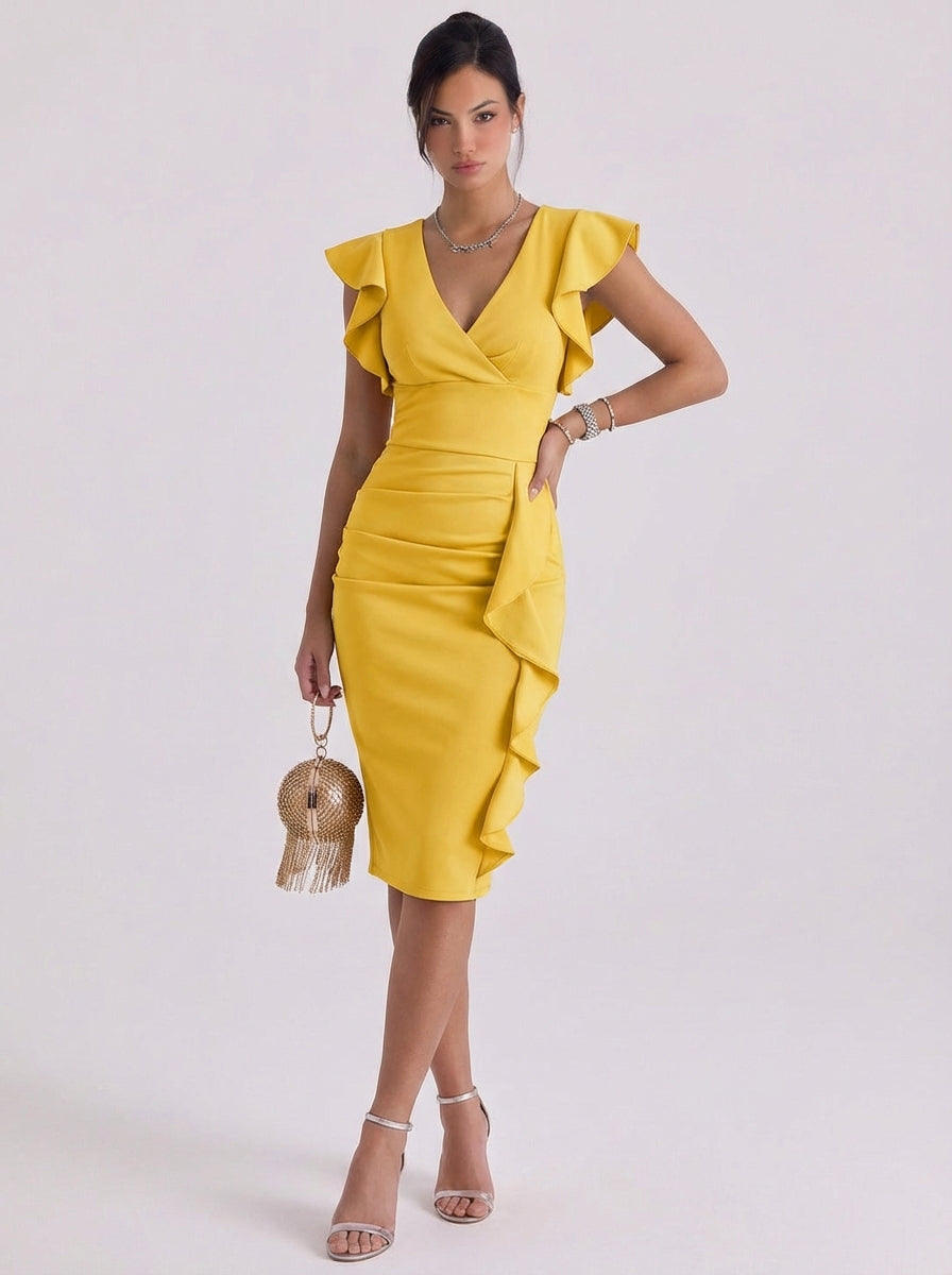 C'è una magia silenziosa intrecciata in Abito midi aderente con maniche a volant in crêpe. Lavorato a mano con cura, evoca la sensazione di mattine fresche, foglie dorate e il calore delicato di casa. Ogni pezzo porta l'anima dell'artigianato, è morbido, senza tempo e fatto per essere amato per anni.